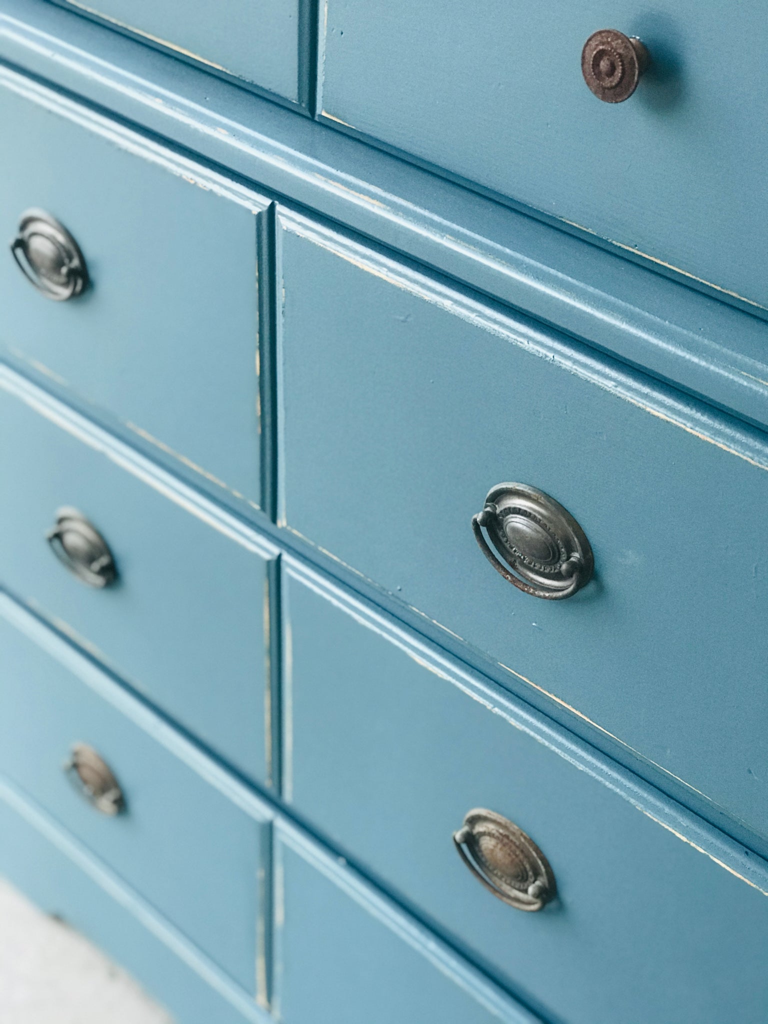 •Distressed “Prussian Blue” finish
