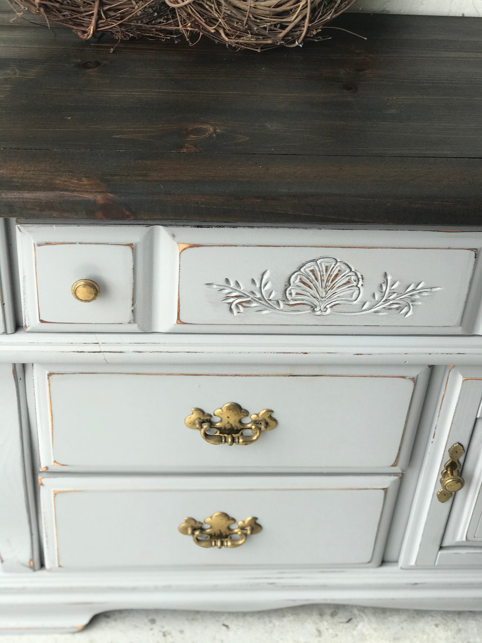 •Distressed “Elemental Grey” finish (see swatch pic)