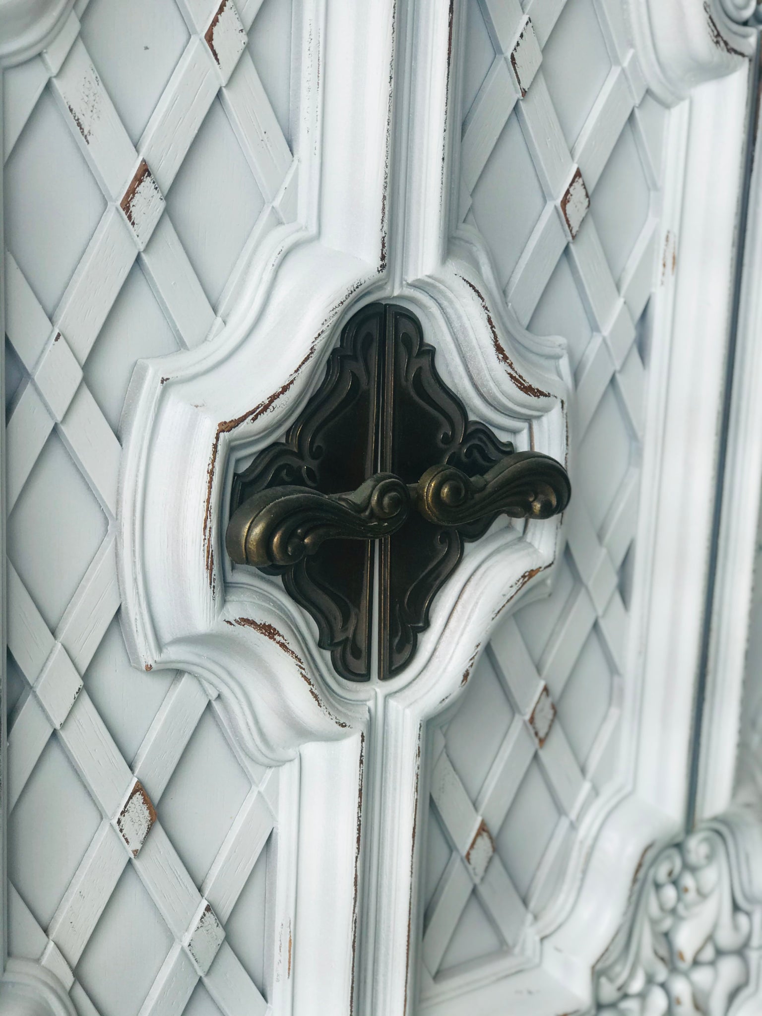•Distressed antique white finish