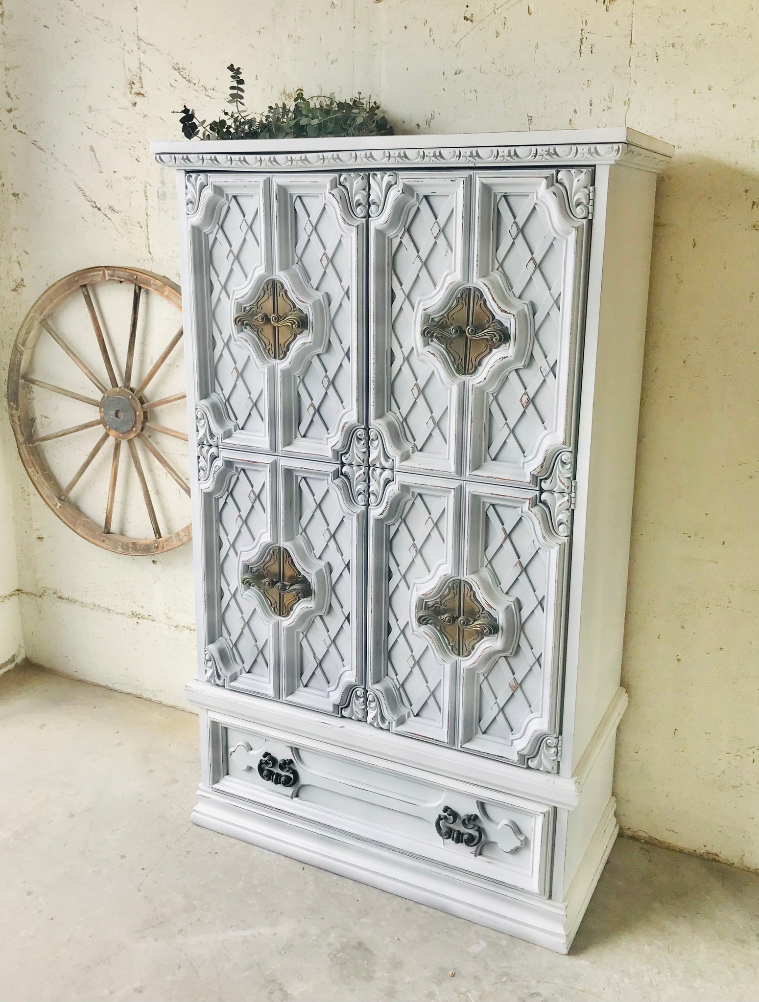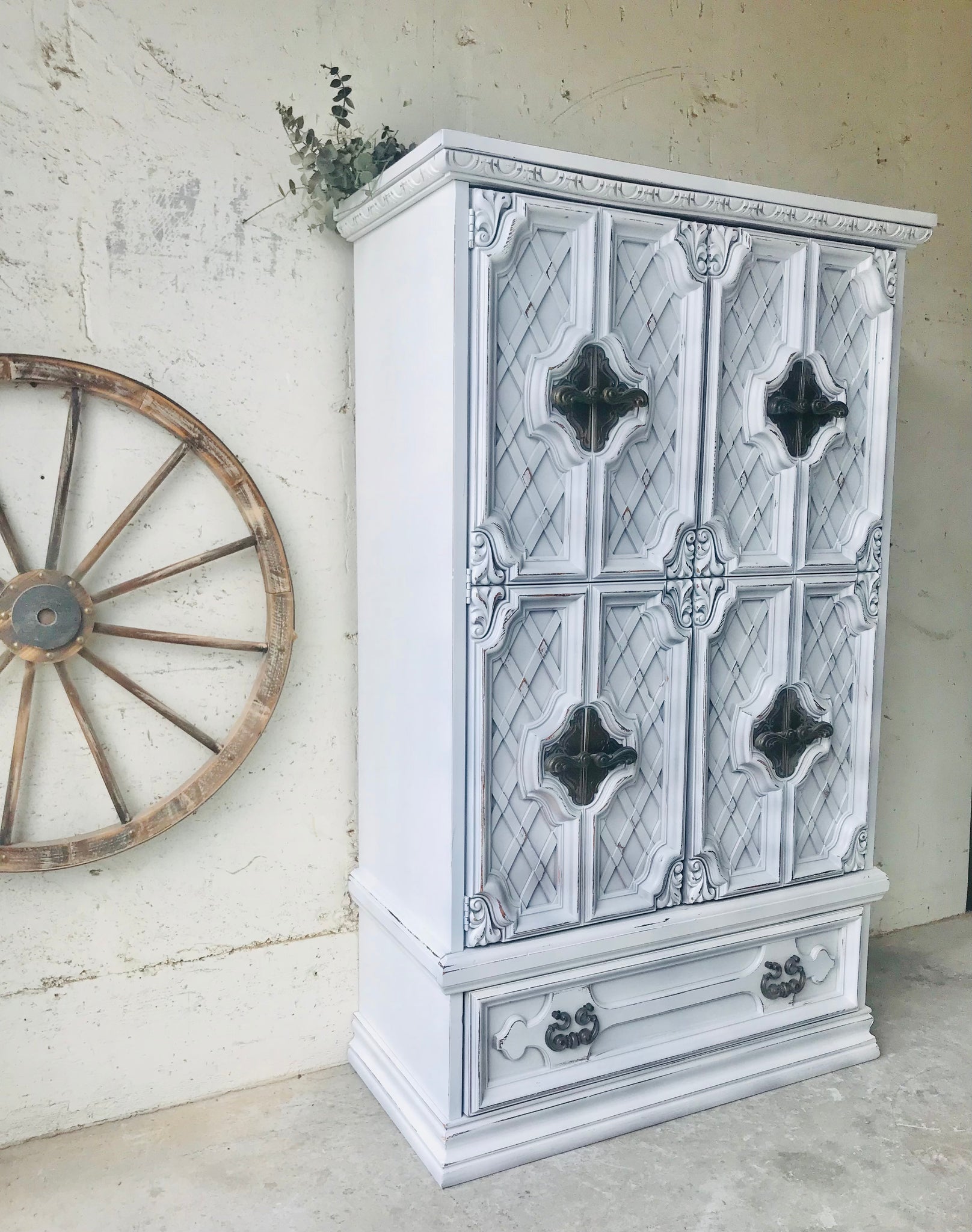 Stunning large vintage farmhouse armoire chest of drawers